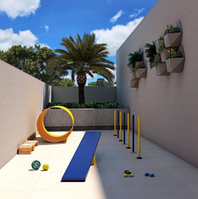 Nas áreas comuns, o projeto reflete o estilo de vida de quem busca mais: piscina com wet deck, solarium, espaço gourmet com forno de pizza, lounge com fireplace, coworking, pet care, brinquedoteca, academia, salão de festas, horta e muito mais, tudo isso envolto por uma atmosfera de modernidade e acolhimento.