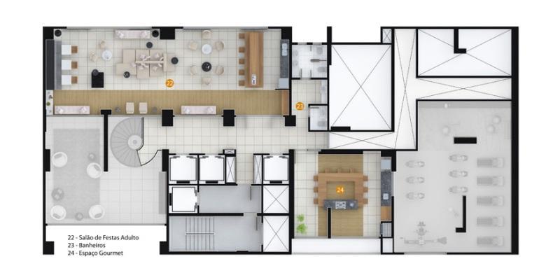 O condomínio oferece uma infraestrutura completa para o seu lazer e bem-estar. Com portaria 24 horas, você pode ficar tranquilo sabendo que a segurança é uma prioridade. A piscina coberta é perfeita para os dias em que você deseja relaxar, enquanto o salão de festas e o espaço gourmet são ideais para receber amigos e familiares. Além disso, conta com academia, para manter sua rotina de exercícios e lavanderia coletiva.