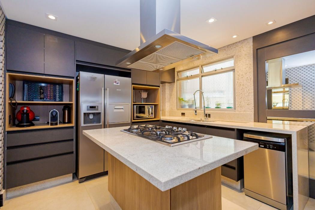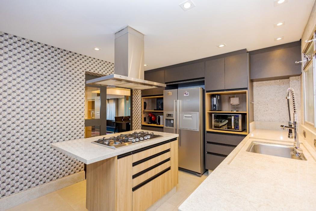 - Cozinha com Ilha, Cooktop e Coifa - Totalmente Equipada e Decorada