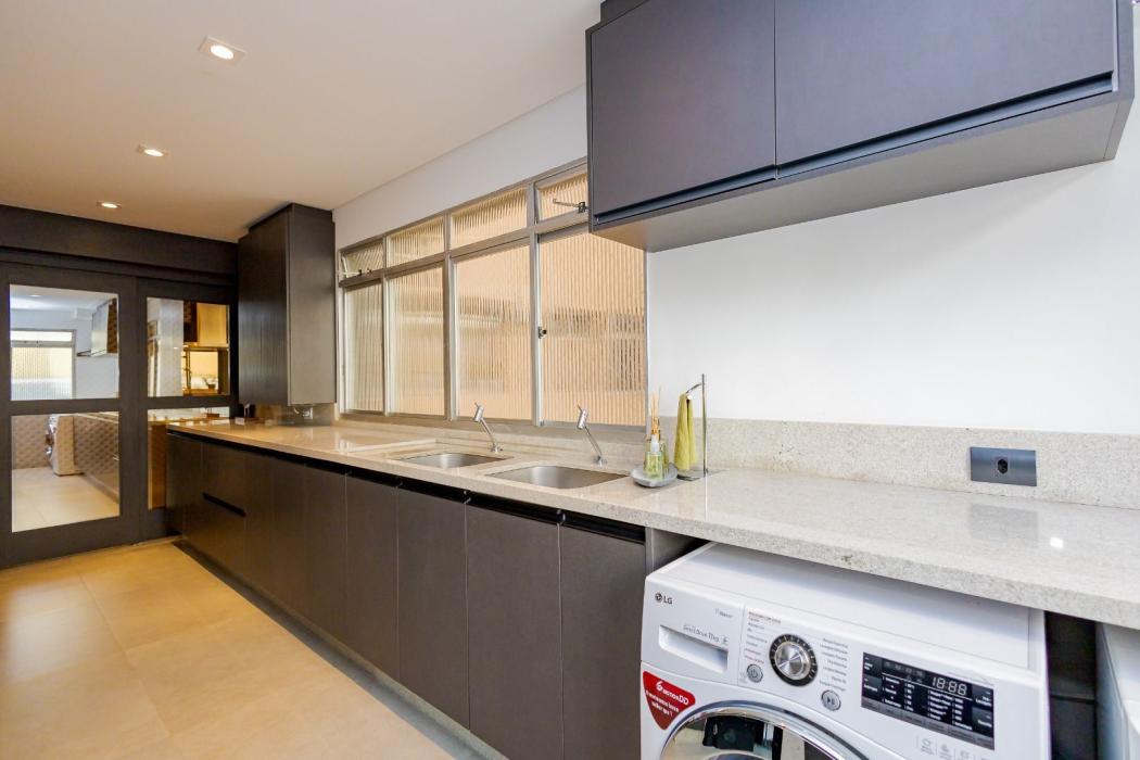 - Área de Serviço Ampla com Móveis Planejados, Despensa e Acesso de Serviço com Elevador Privativo