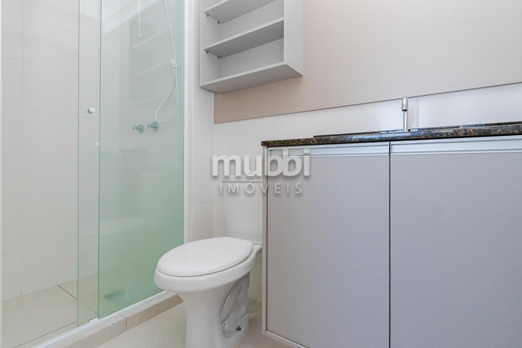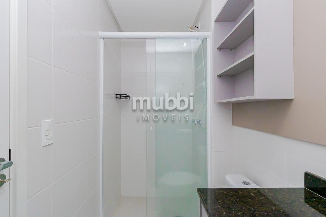 • Banheiro social com box de vidro e armário;