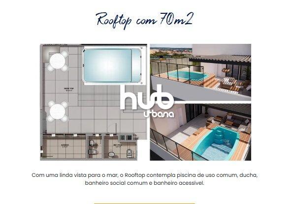 No rooftop, há um espaço de lazer incrível com piscina e vista panorâmica do oceano, ideal para relaxar e aproveitar o melhor do litoral.