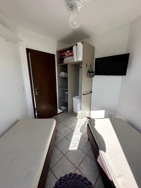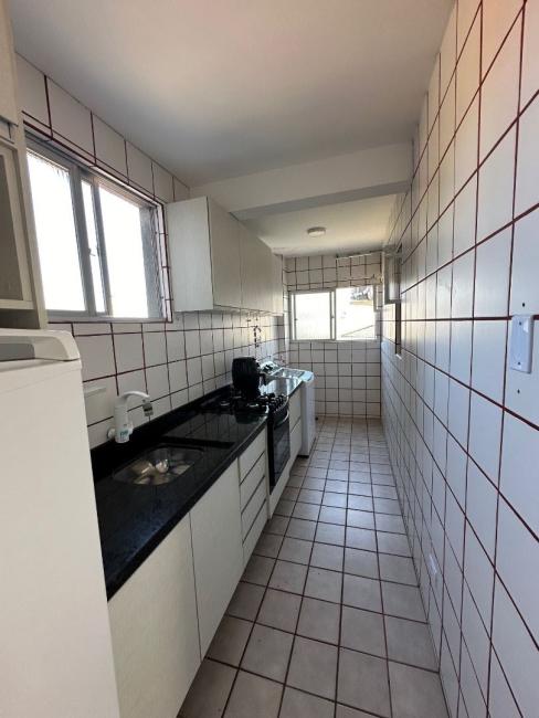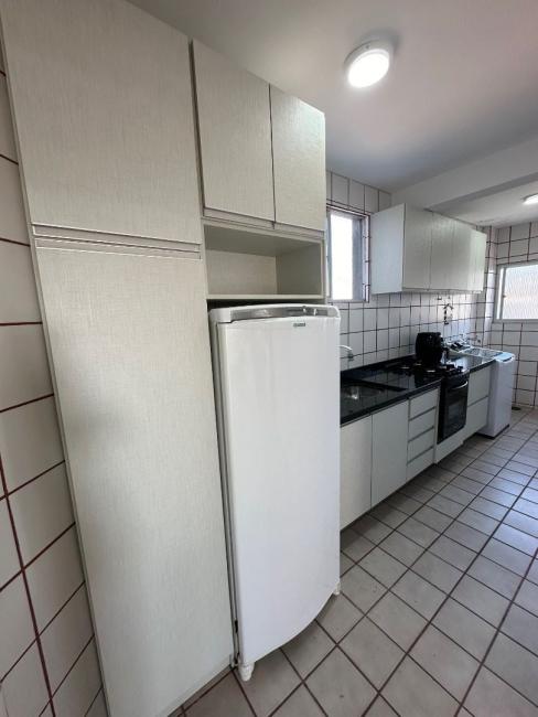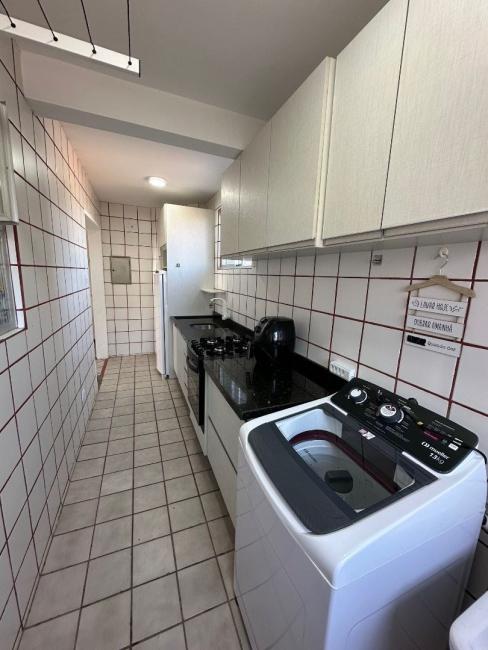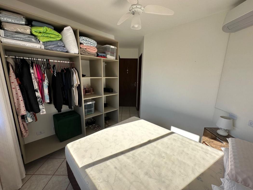 O apartamento esta totalmente mobiliado, possui 3 quartos com armários, camas, cortinas, sendo 1 de solteiro com TV smart, todos os quartos com ventilador de teto, a suíte possui ar condicionado, ambos os banheiros com box, chuveiro, e gabinete com espelho, corredor com espaço para guardar pertences, ampla sala para dois ambientes com mesa com 5 cadeiras, cristaleira, painel de TV android, sofá retrátil, ampla sacada com churrasqueira a carvão com pia de apoio em granito, sacada fecha com vidro, cozinha toda com armários com geladeira, fogão e forno embutidos e maquina de lavar roupas, possui 1 vaga de garagem coberta.