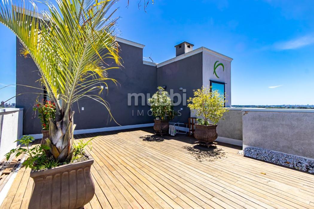 Terraço com acesso exclusivo com deck de madeira já instalado e paisagismo