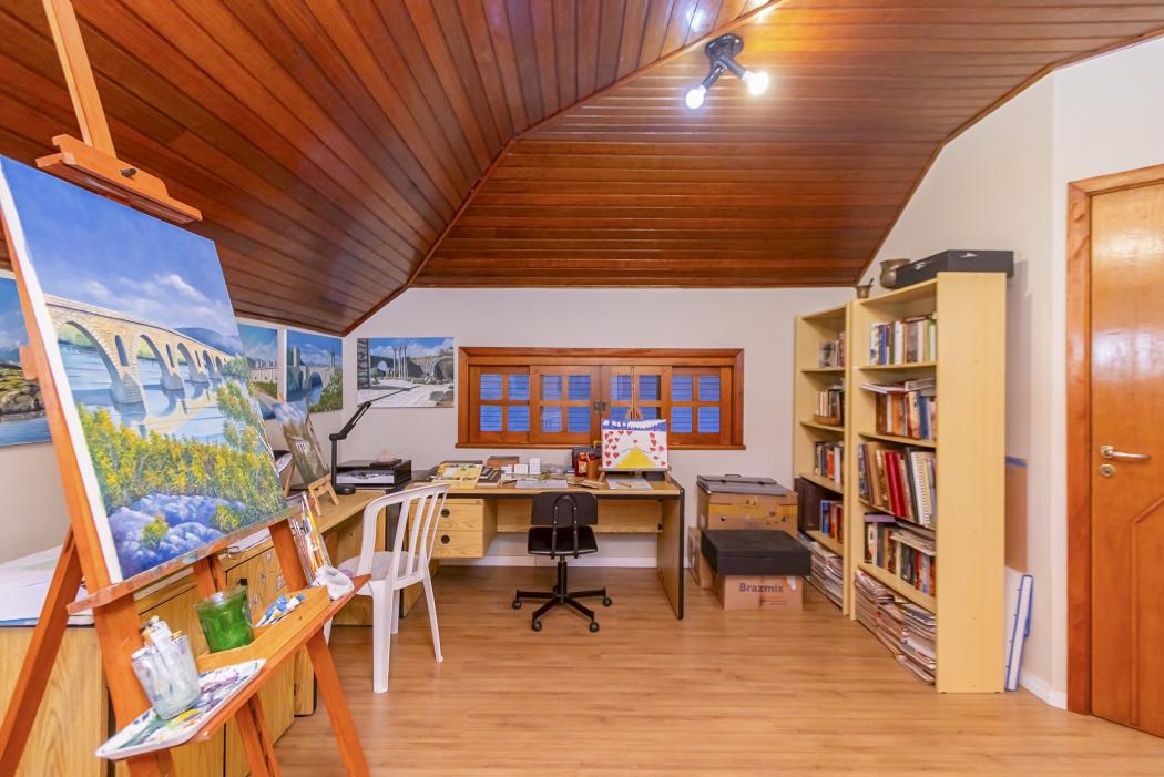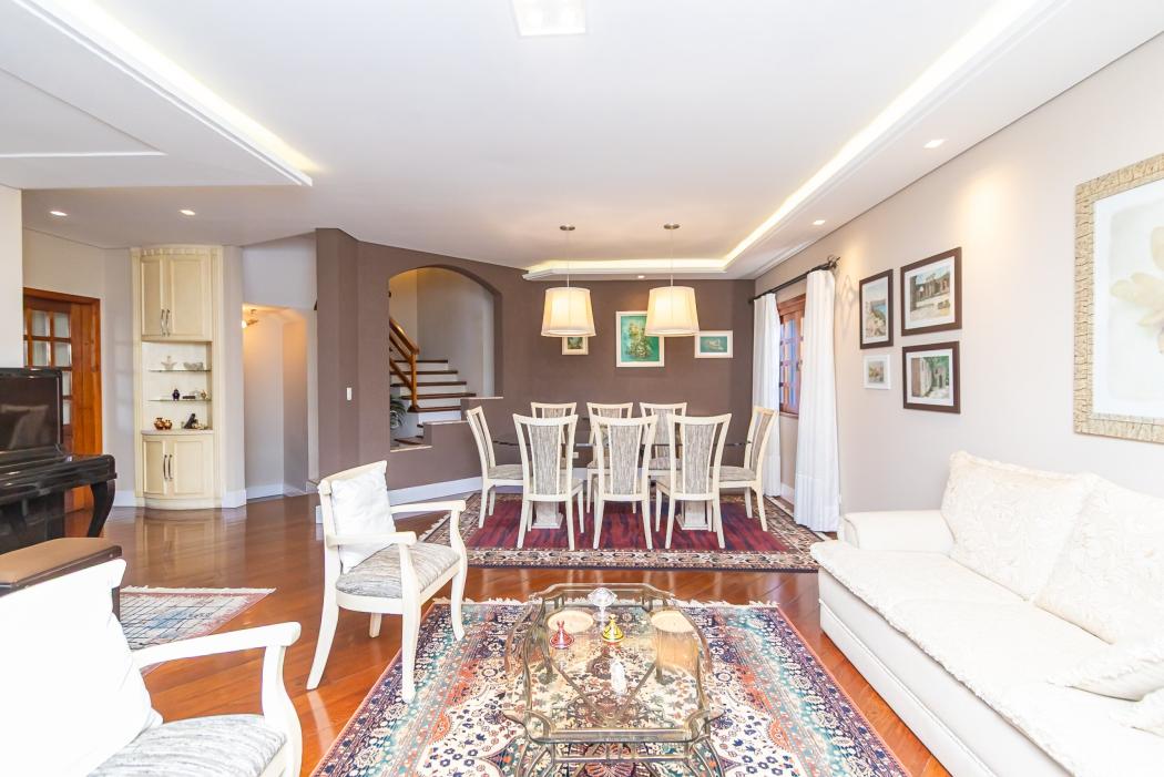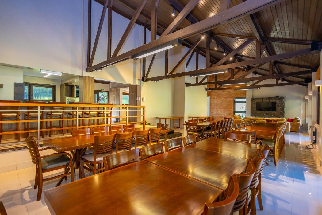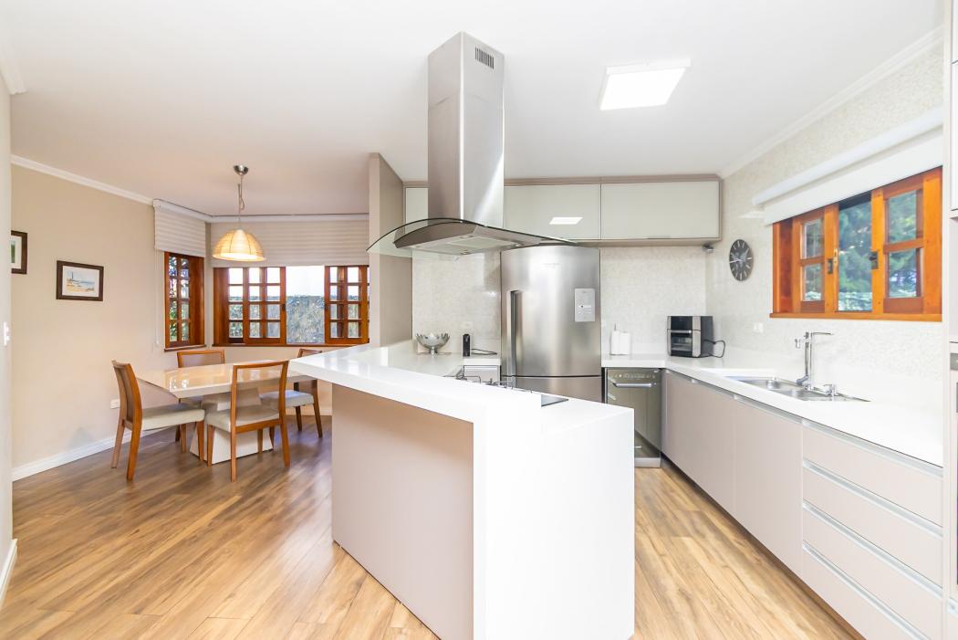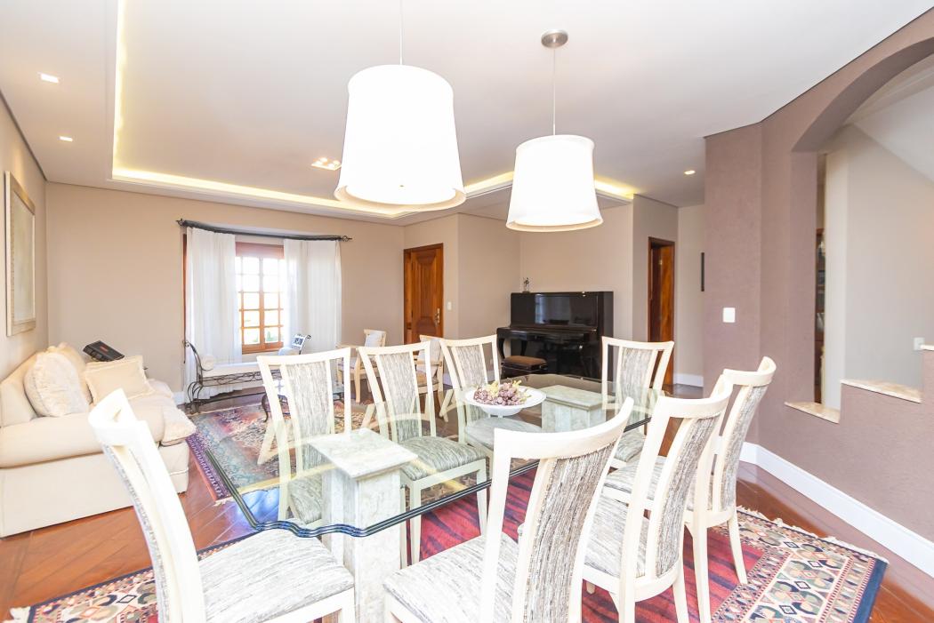 * Ambientes amplos: salas de estar, jantar e sala íntima com lareira