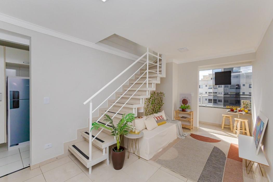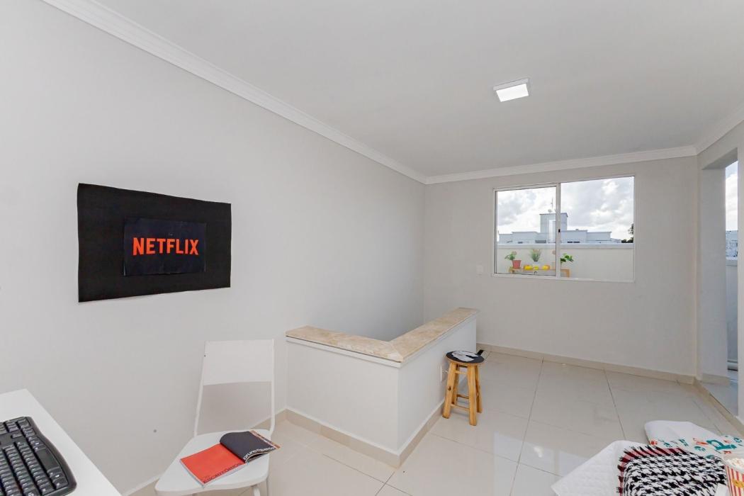 Vendemos belíssima cobertura duplex no bairro Bacacheri, pronta para morar, imóvel desocupado, ensolarada e ventilada, fica próximo ao Base aérea, exército e a todo o comercio em geral, possui 1 vaga de garagem coberta e demarcada.