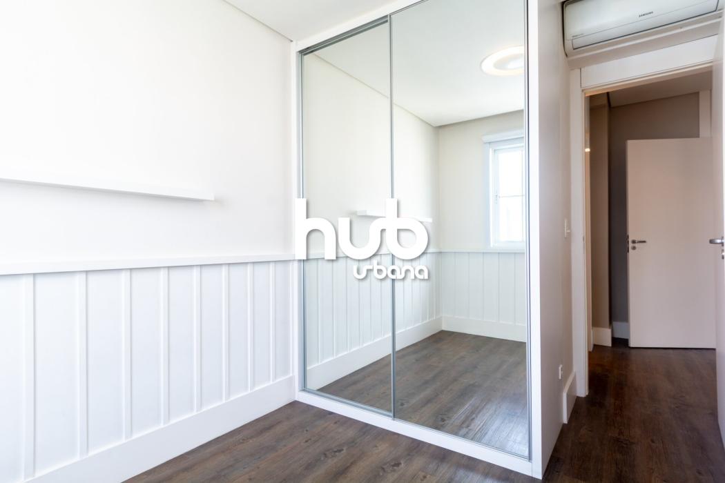 pontos de ar-condicionado já previstos desde a construção, marcenaria planejada de alto padrão, e uma combinação elegante de materiais — porcelanato nas áreas sociais e piso vinílico nos dormitórios, garantindo conforto e sofisticação.