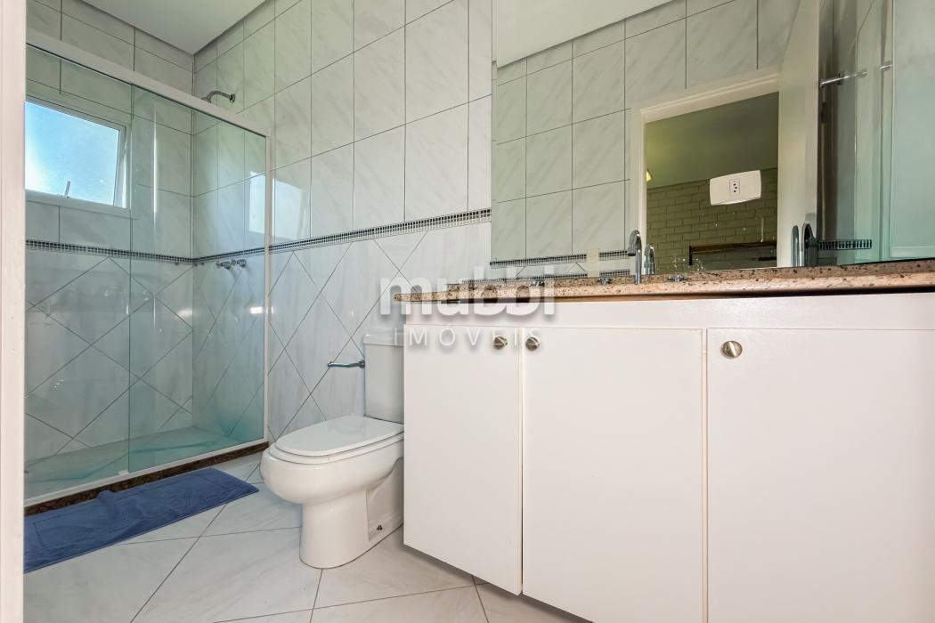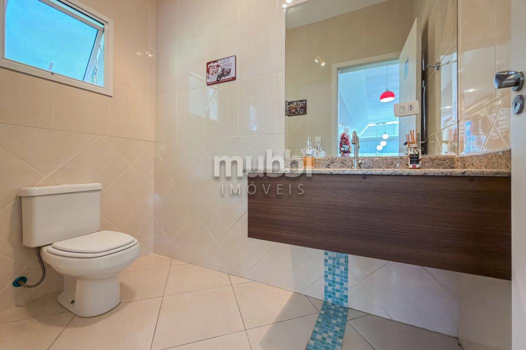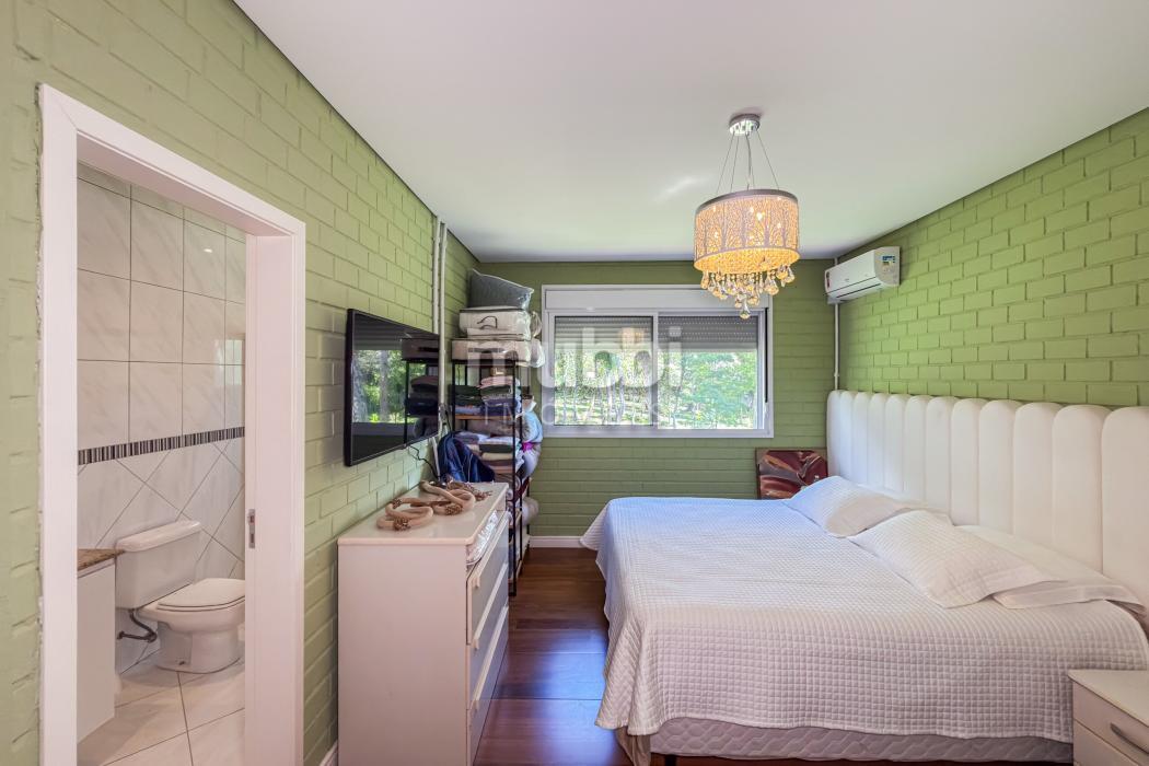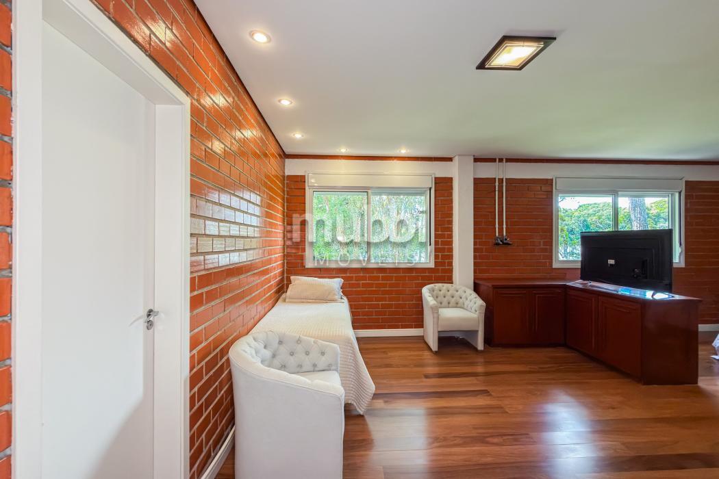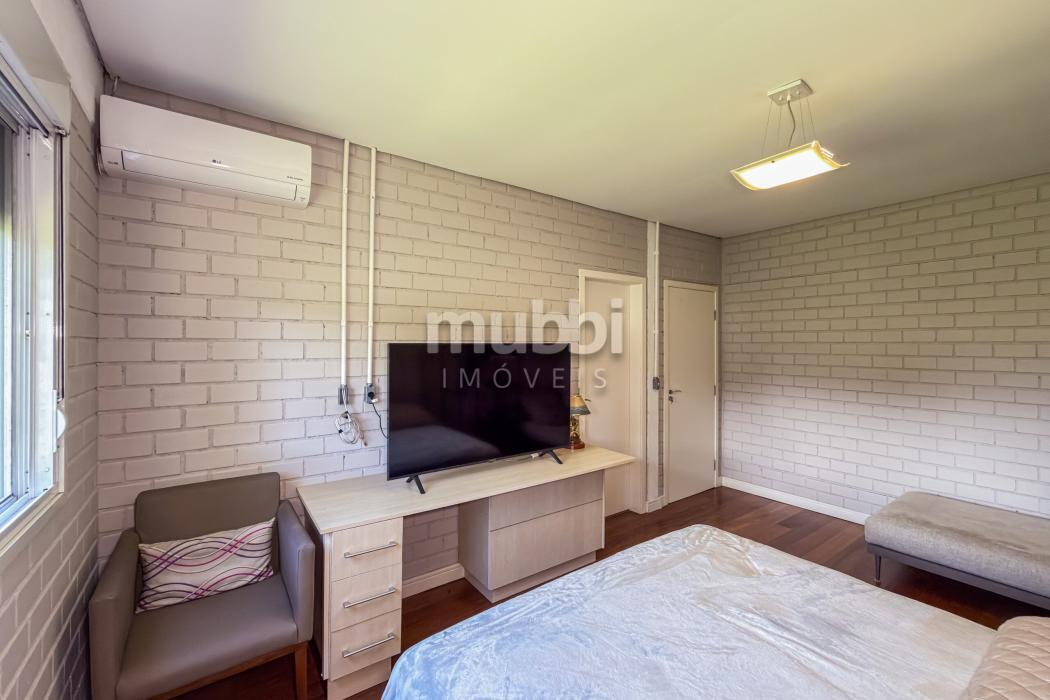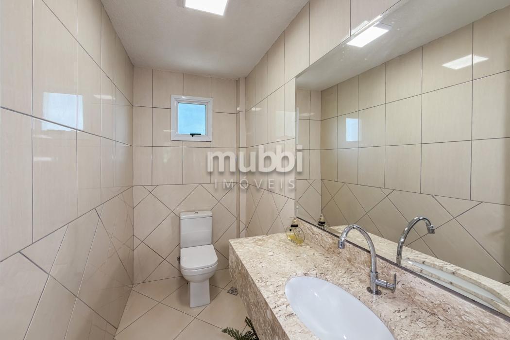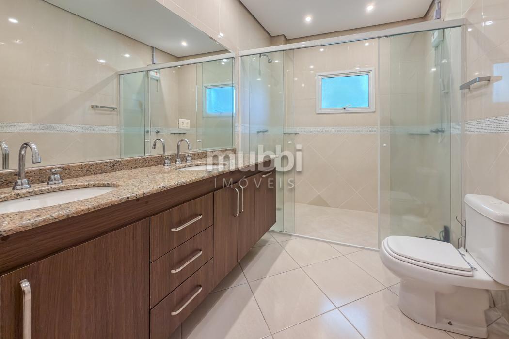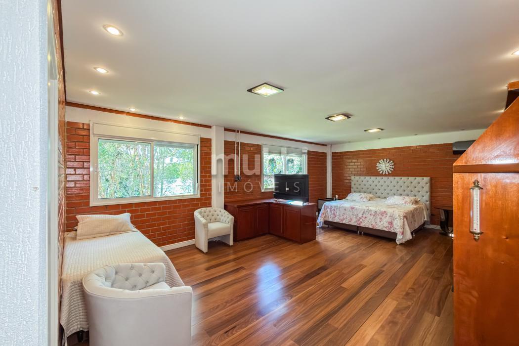 No pavimento superior encontram-se quatro suítes amplas, incluindo uma suíte master, garantindo organização e privacidade na área íntima.