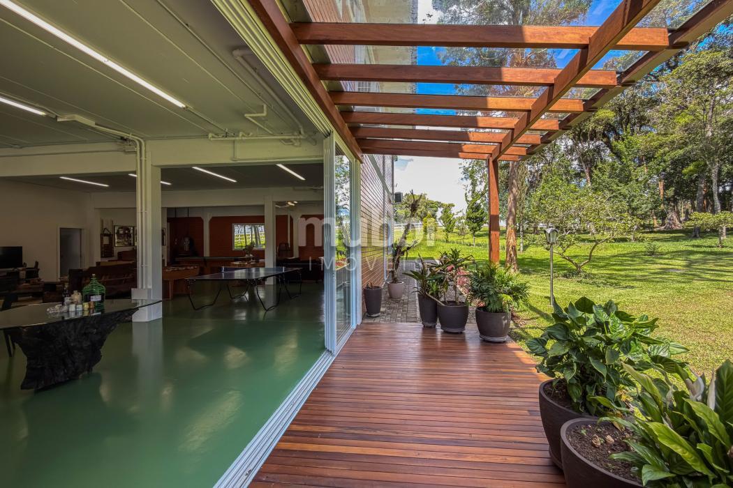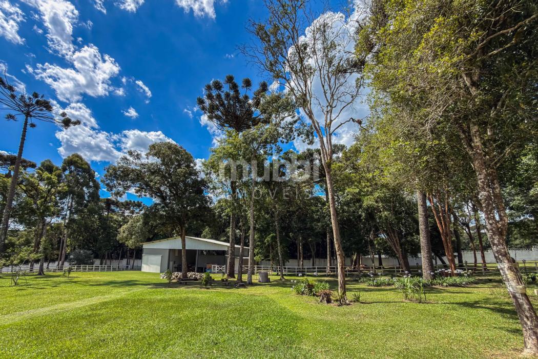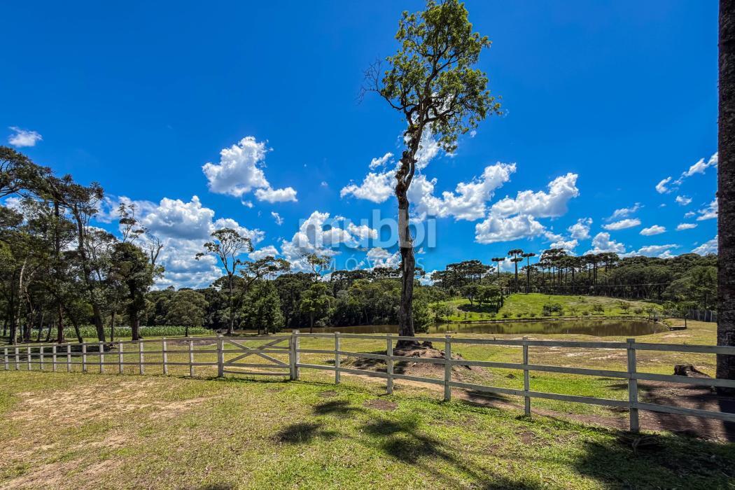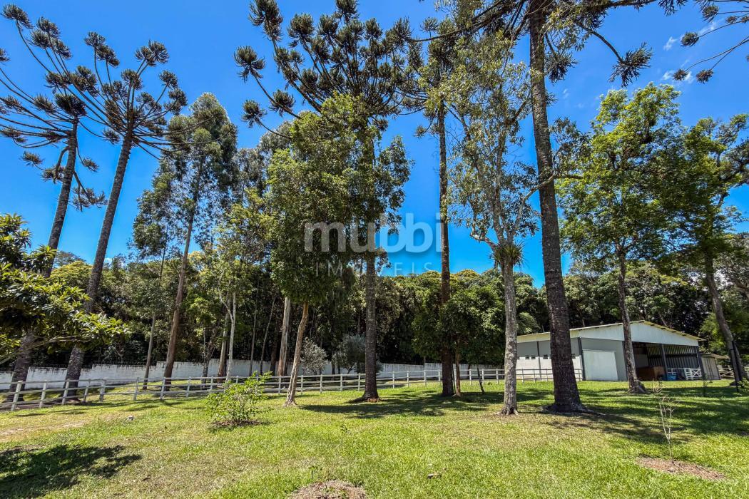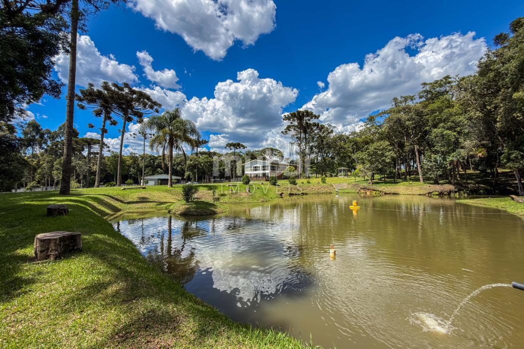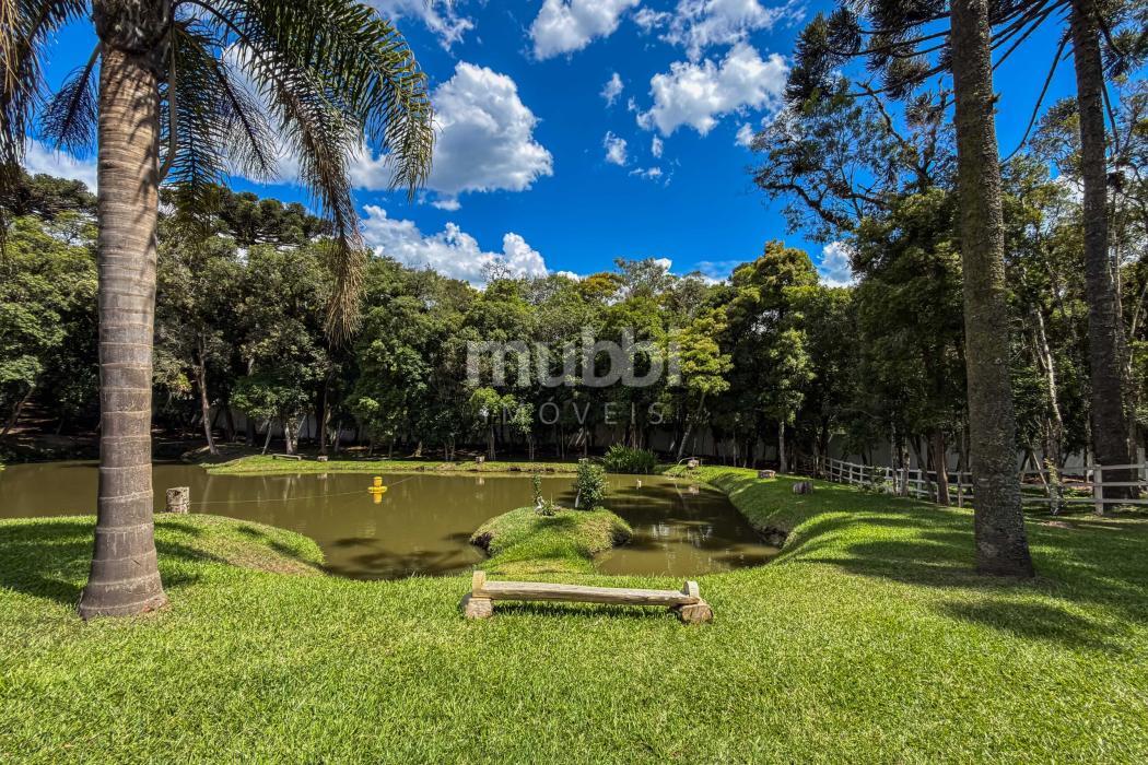 O terreno abriga dois lagos naturais, diversas árvores frutíferas e a presença marcante de araucárias, símbolo tradicional do Paraná. O cenário é maduro, consolidado e altamente valorizado, criando um ambiente de refúgio verdadeiro para quem busca chácara próxima a Curitiba com contato direto com a natureza.