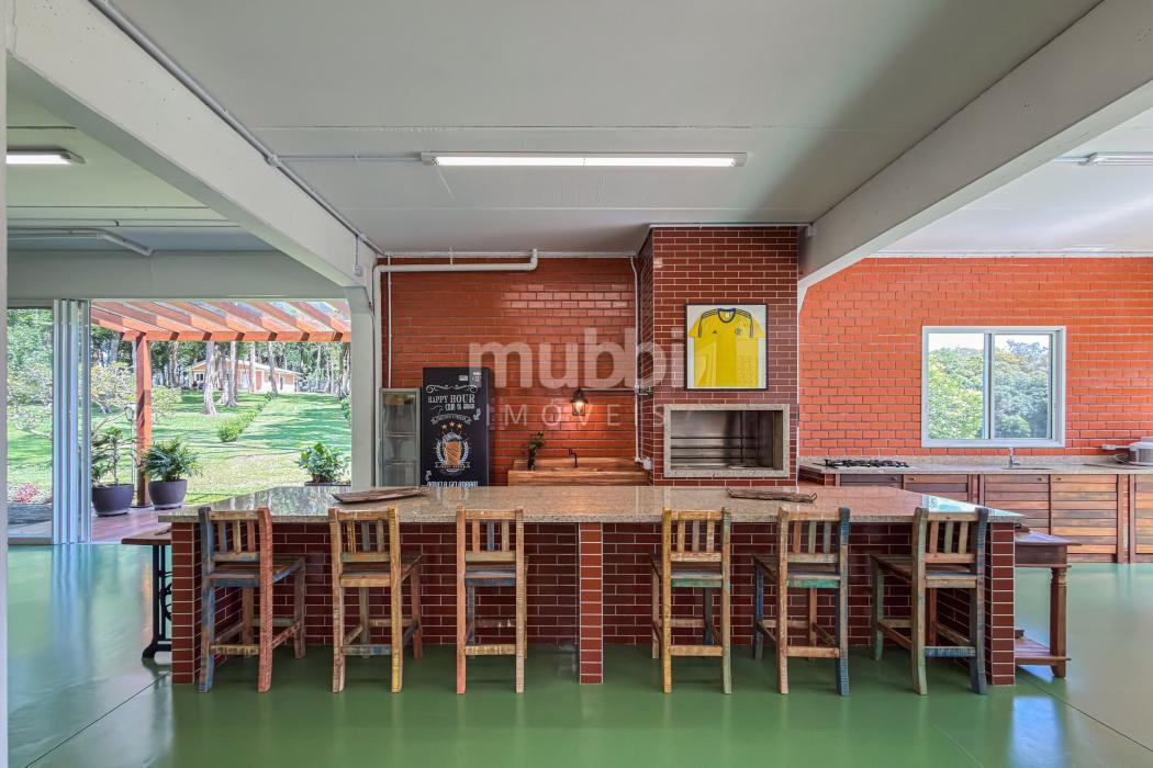 Neste mesmo nível está um dos grandes diferenciais da propriedade: uma cozinha gourmet completa, planejada, mobiliada e equipada com churrasqueira, integrada a uma generosa sala de jantar. Um ambiente concebido para receber com elegância, onde convivência e funcionalidade caminham naturalmente.