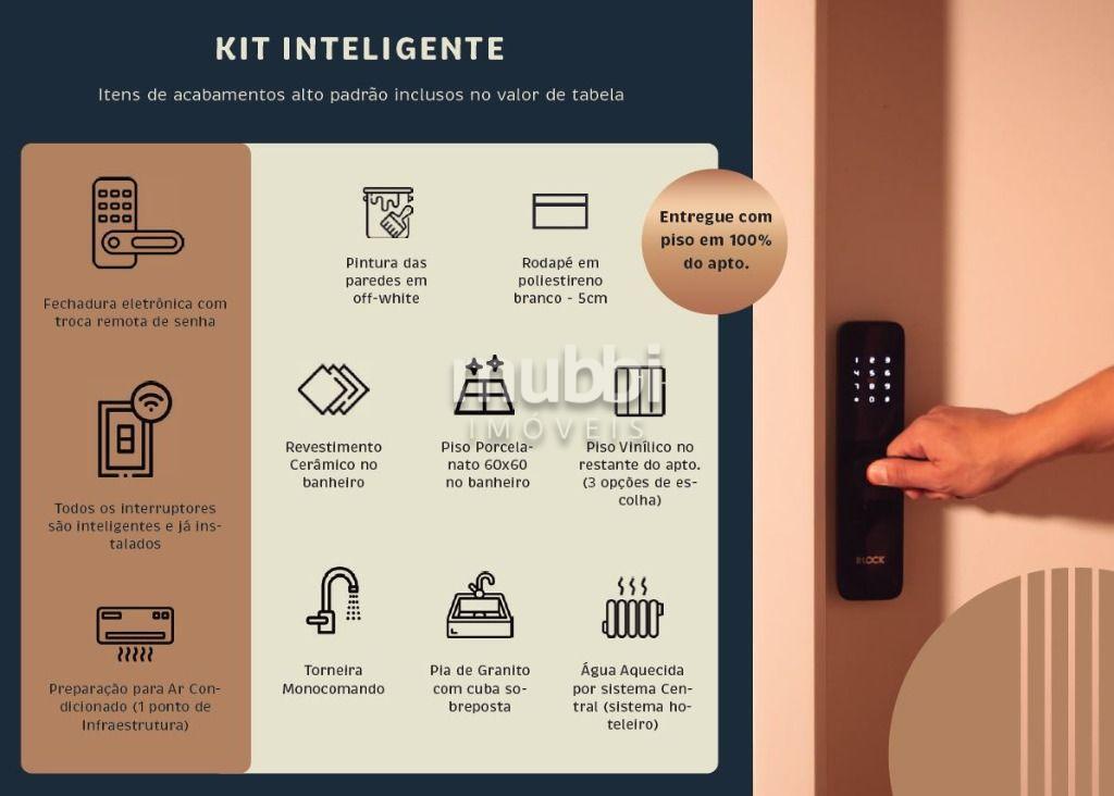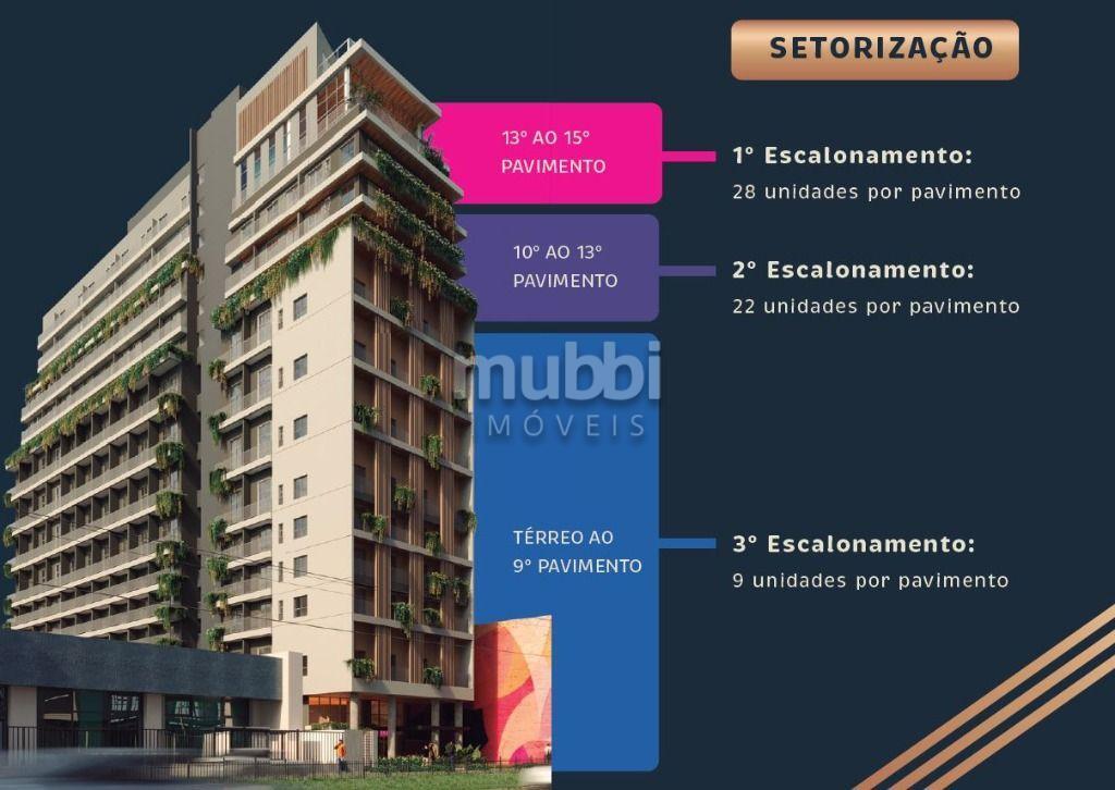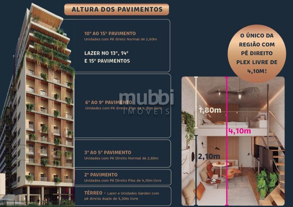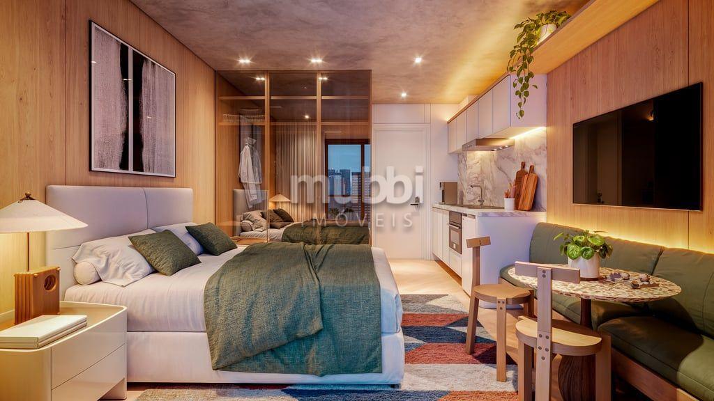 Studio com 22,20 m² privativos, 1 quarto.