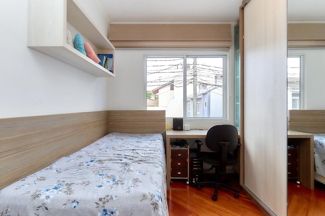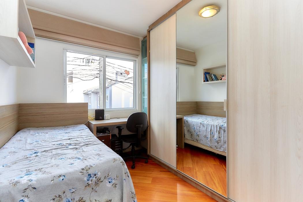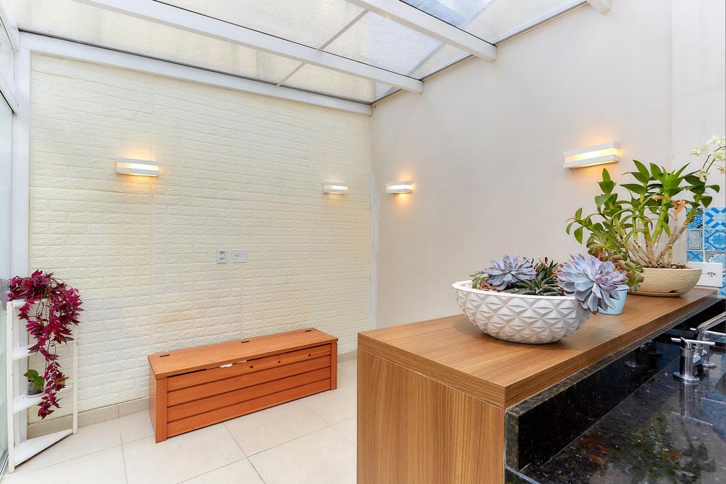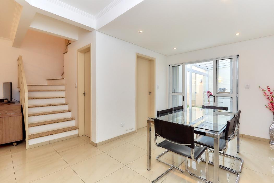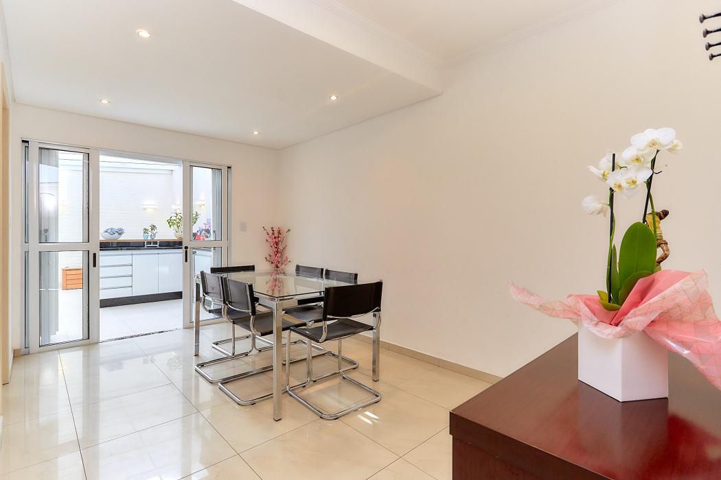Com 105 m² de área construída, o imóvel oferece uma planta bem distribuída, com três dormitórios, incluindo uma suíte, perfeita para garantir conforto e privacidade à família. A área social é composta por uma ampla sala de estar integrada à sala de jantar, proporcionando um ambiente acolhedor e funcional. A cozinha conta com móveis planejados que otimizam o espaço e agregam praticidade ao dia a dia. Nos fundos, o espaço gourmet é um dos grandes destaques do imóvel, com cobertura de vidro e estrutura metálica, ideal para momentos de lazer e confraternização. O sobrado ainda dispõe de duas vagas de garagem.