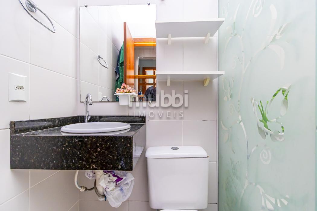No pavimento térreo, a sala de estar é separada da sala de jantar, criando áreas sociais distintas e mais agradáveis para convivência. A cozinha com armários planejados entrega praticidade no dia a dia e aproveitamento inteligente do espaço. O lavabo complementa a área social, atendendo visitas com comodidade.