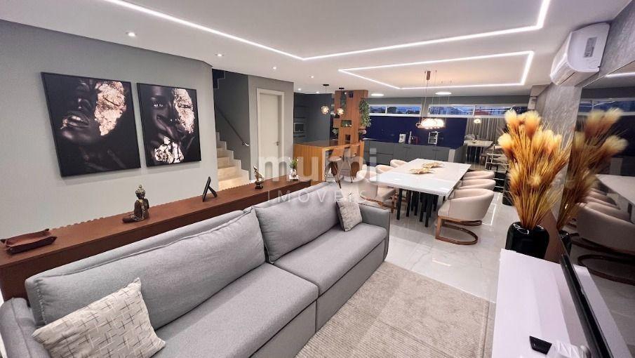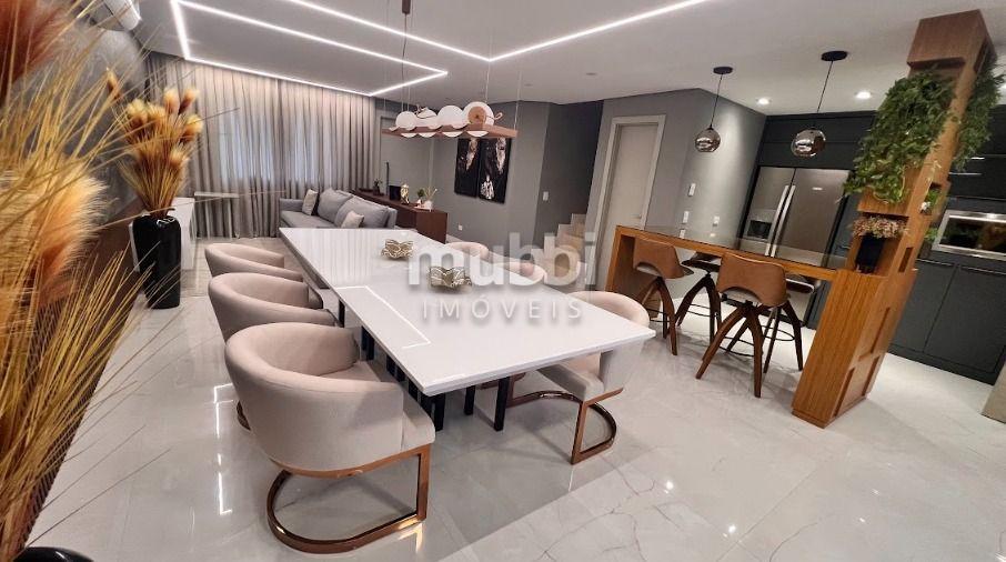 - Sala ampla para 2 ambientes, Cozinha em conceito aberto com armários planejados, lavabo, banheiro social, lavanderia, Terraço com Espaço gourmet com mais 1 lavabo e 3 vagas de garagem.