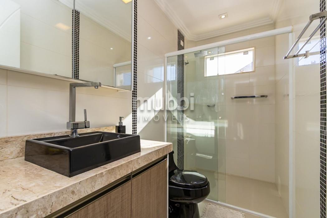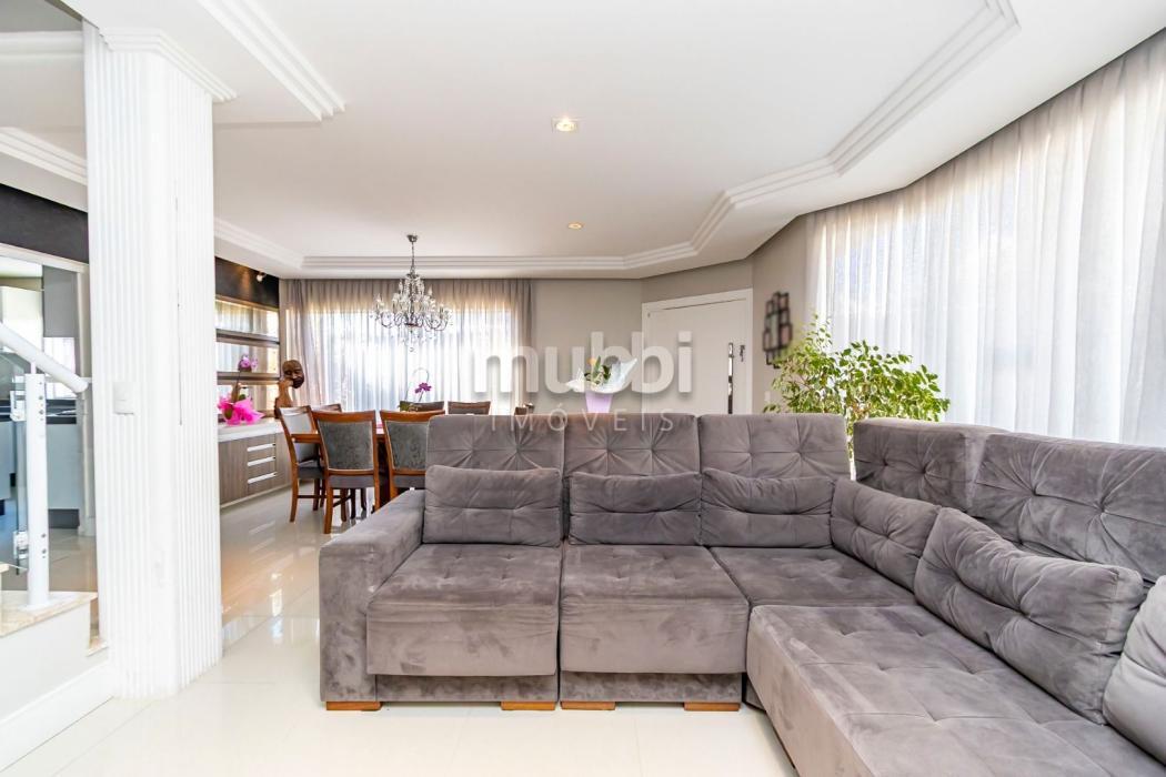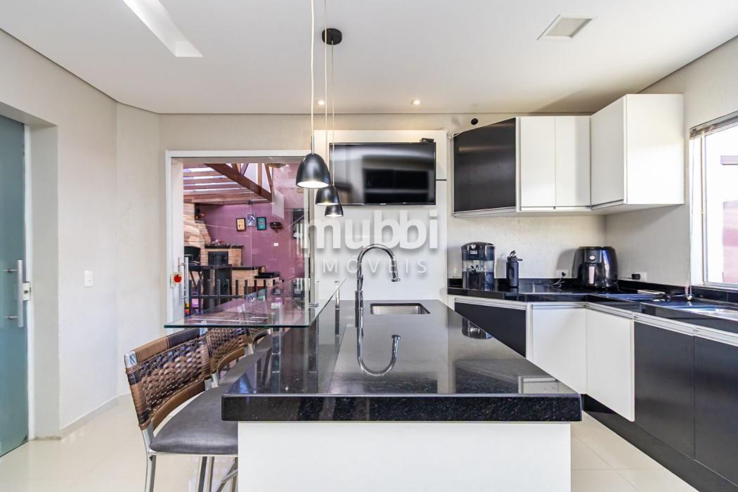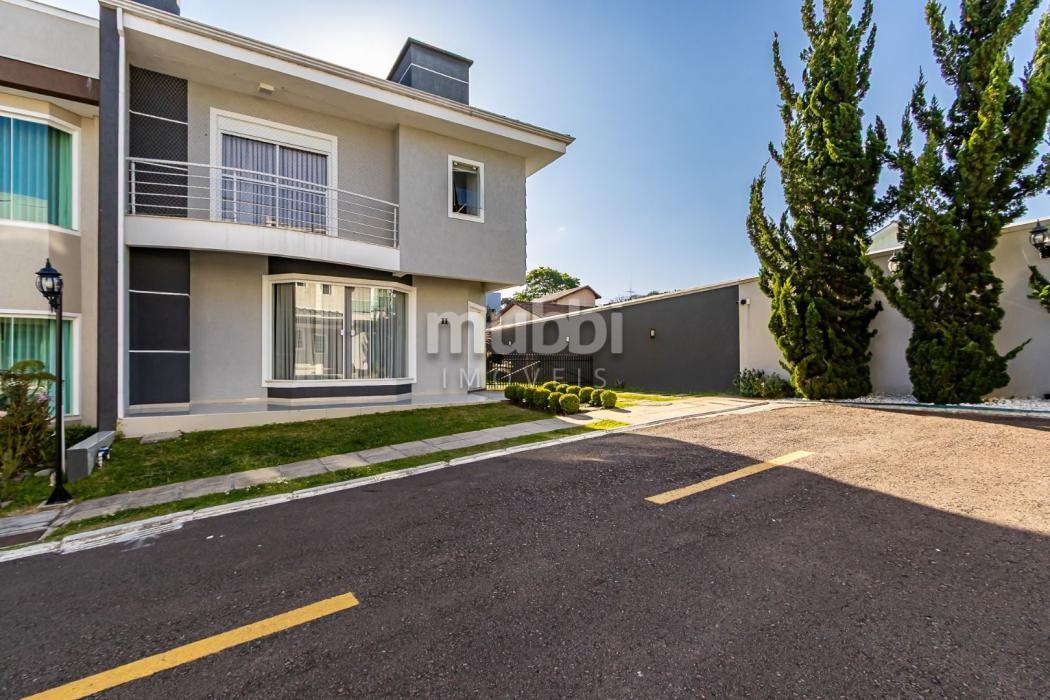 Excelente sobrado ensolarado, padrão diferenciado, com um ótimo terreno e localizado no Uberaba dentro do Residencial Zandoná. Para quem busca segurança, conforto, requinte, esta é a oportunidade de conhecer este imóvel com 236m2 de área construída, sendo 167m2 averbados. No piso térreo teremos uma sala ampla para 02 ambientes, lavabo, depósito abaixo da escada, cozinha mobiliada, área de serviço com armários, um aconchegante e espaçoso salão com churrasqueira, banheiro e mais um espaço externo. No piso superior teremos 3 amplos dormitórios com armários planejados, sendo um deles suíte com sacada , closet e hidromassagem. O sobrado possui uma ótima incidência do sol da manhã e tarde. O condomínio tem uma área comum bastante ampla, com quadra de futebol, pergolado e mais o playground. Possui portaria remota. Está numa localização muito boa, com um vasto comércio nos arredores, incluindo o hipermercado Condor. Tem rápido acesso para o aeroporto e saída para o litoral do PR e SC. O imóvel pode ser financiado. Agende uma visita com um dos nossos corretores e venha encantar-se. Aguardamos seu contato.